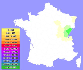 Puis elle s'est très bien adaptée, dès les années 50, dans tous les massifs français où sa part est toujours croissante voire majoritaire : 56% des vaches en Rhône-Alpes et 44% en Auvergne. Elle connaît aussi un très fort développement dans l'Ouest de la France, le sud-ouest, le nord-est et le centre.